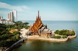 The Sanctuary of Truth is an all-wooden masterpiece in Pattaya, Thailand, overlooking the sea. Built without metal nails, it features towering spires and intricate carvings inspired by Thai, Khmer, Chinese, and Indian philosophies. More than a temple, it represents wisdom, spirituality, and humanity’s connection to nature through art and craftsmanship. Construction continues, symbolizing learning, harmony, and respect for all beliefs.
